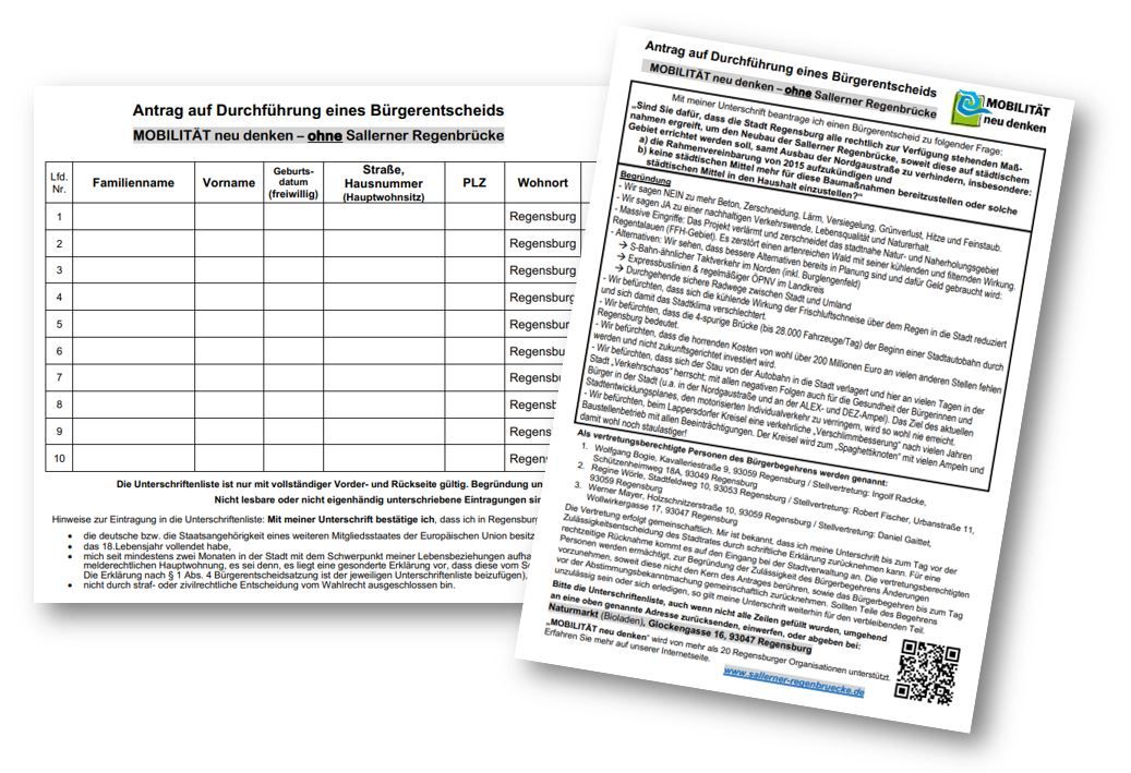 Bürgerbegehren "Mobilität neu denken" - ohne Sallerner Regenbrücke! - Hier können Sie unterschreiben!