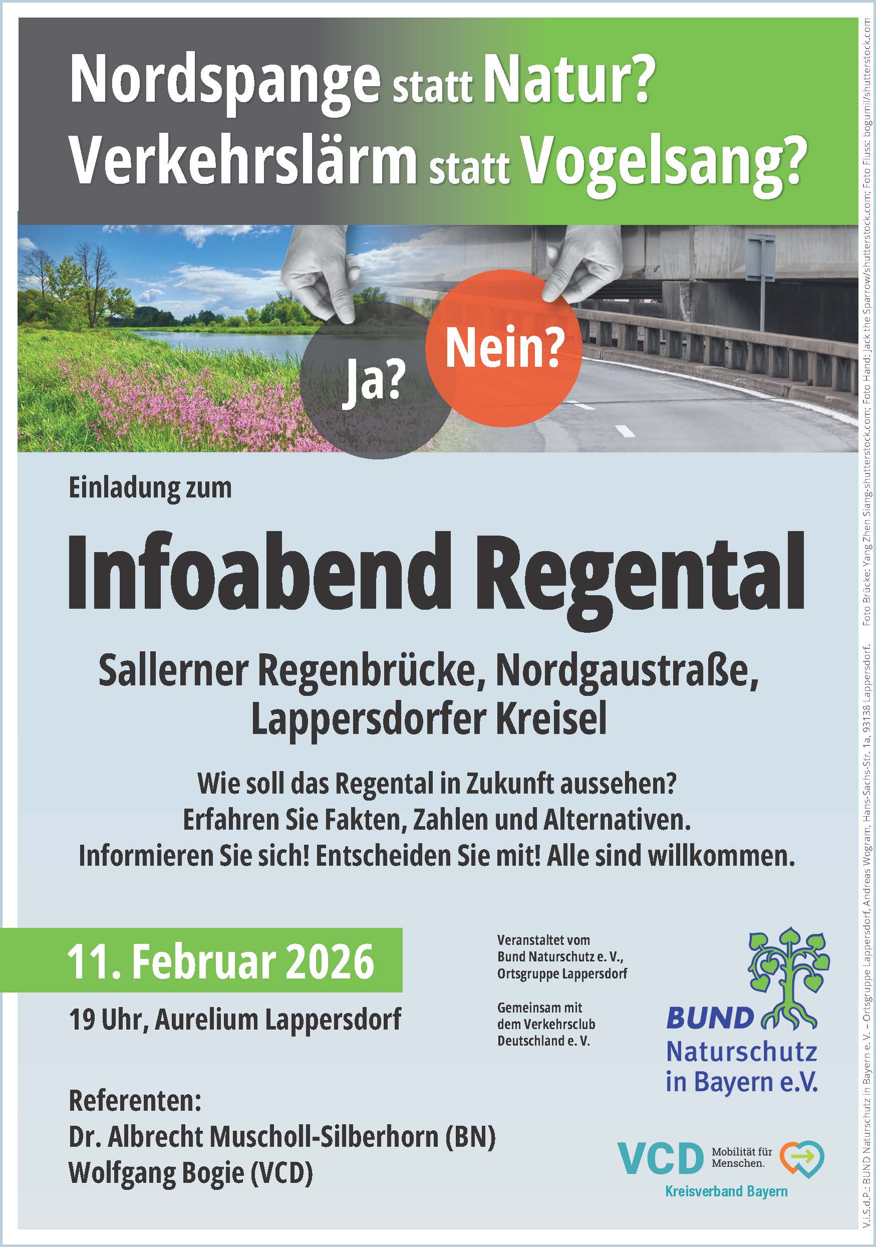 Einladung zum Infoabend Regental - Sallerner Regenbrücke, Nordgaustraße, Lappersdorfer Kreisel am 11.2.26 - 19 Uhr