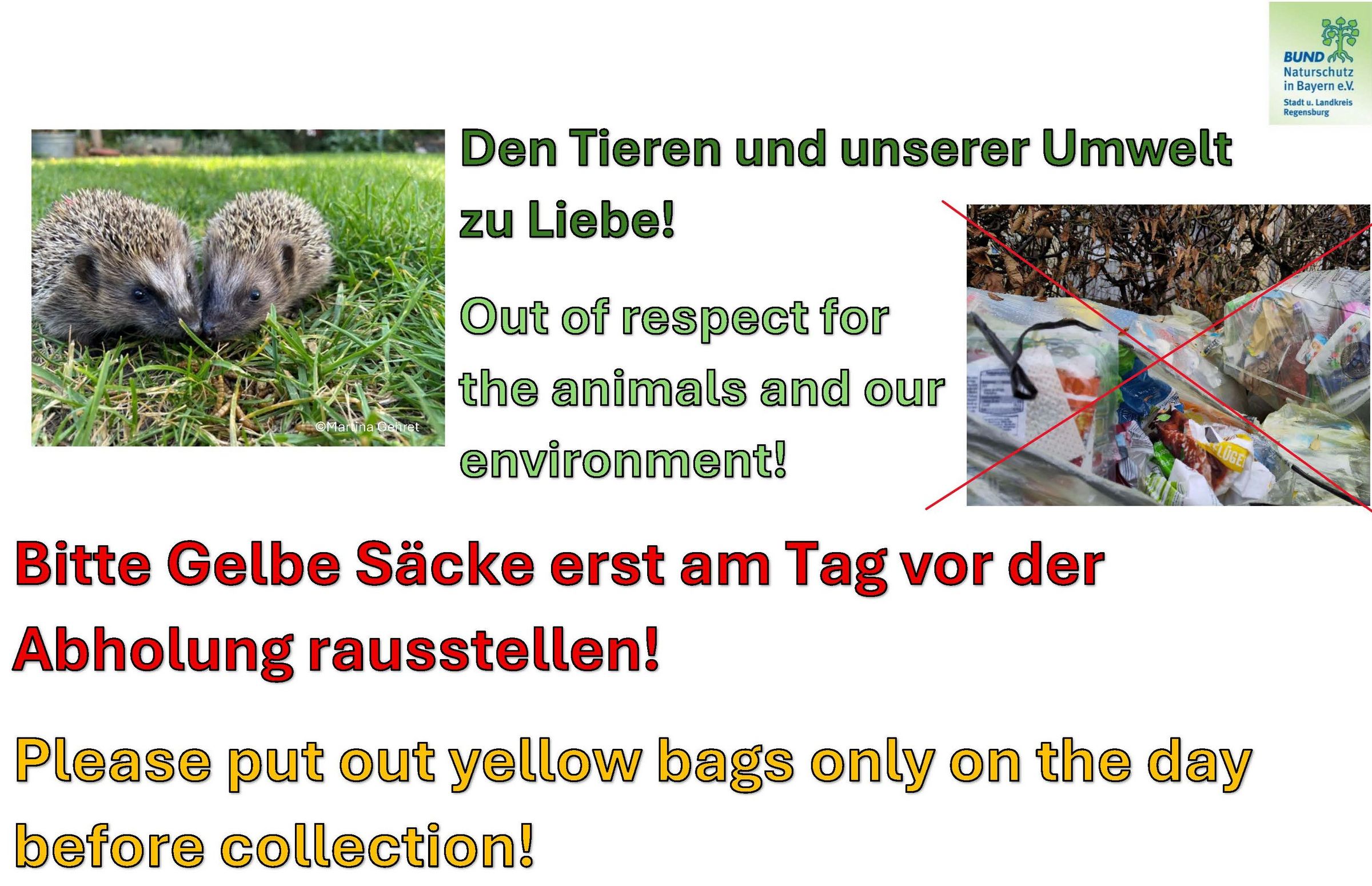 BITTE GELBE SÄCKE ERST AM TAG VOR DER ABHOLUNG RAUSSTELLEN!