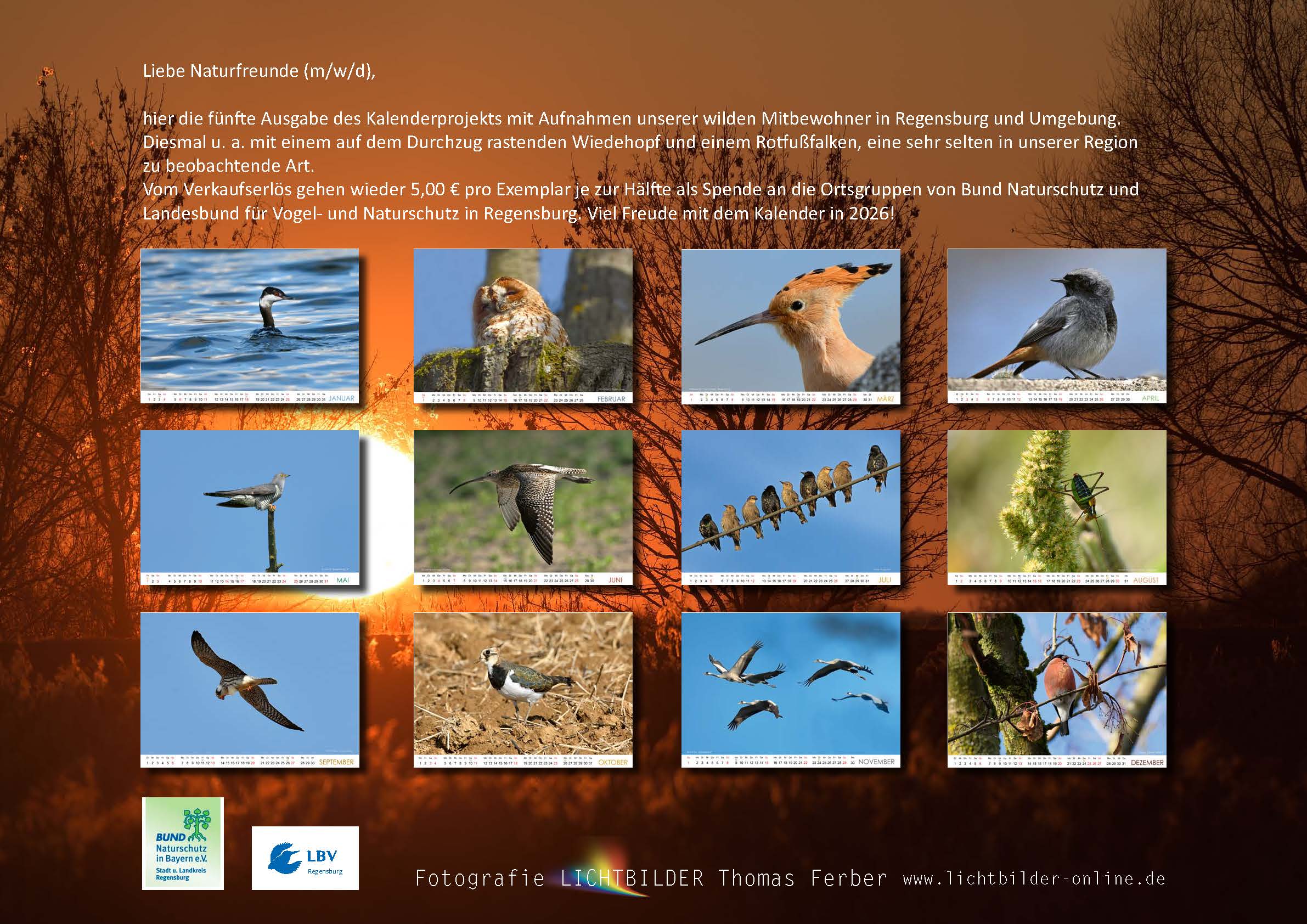 KALENDER WILDES REGENSBURG 2026 mit Spendenaktion für den BUND Naturschutz und den Landesbund für Vogel- und Naturschutz