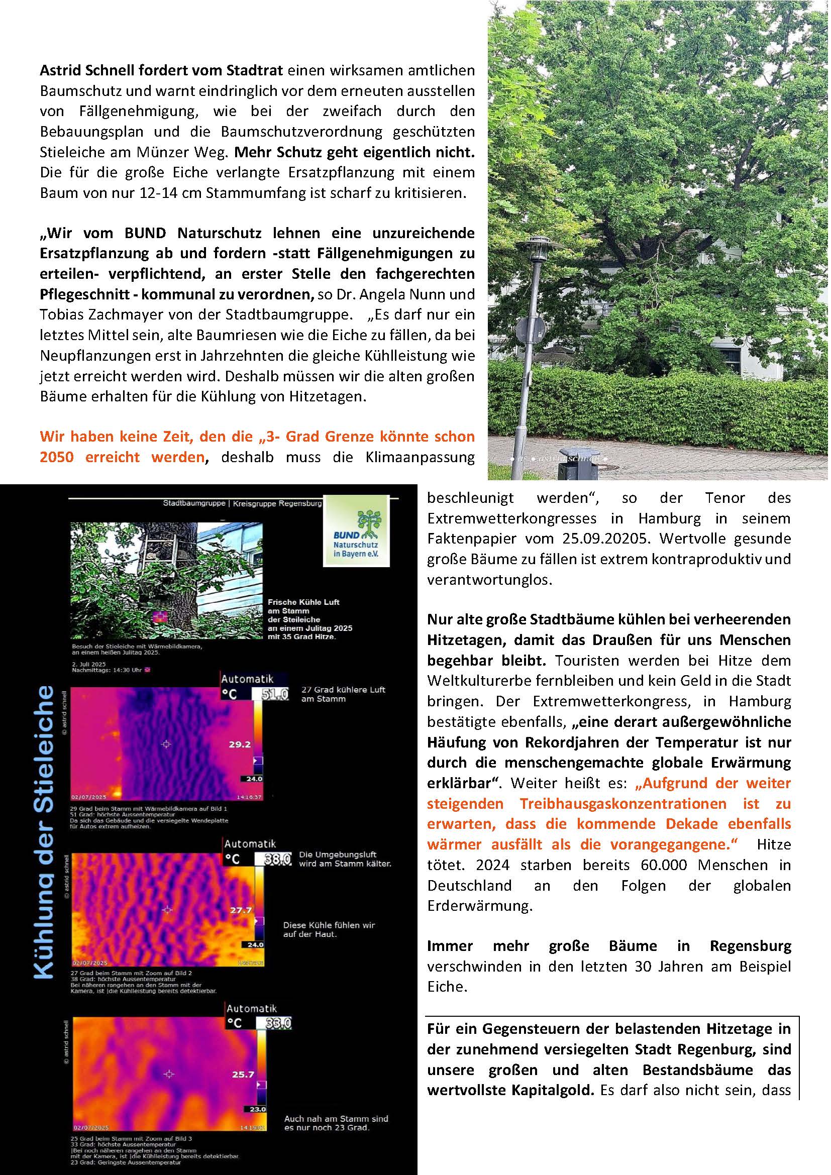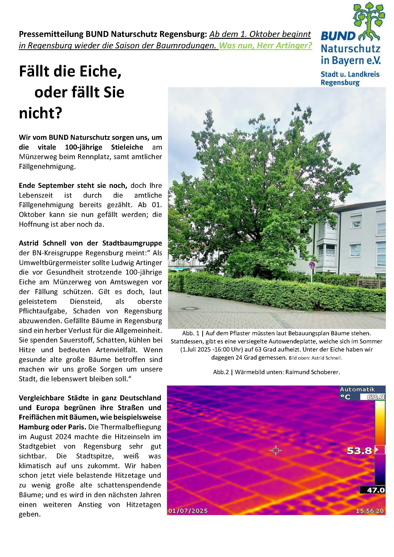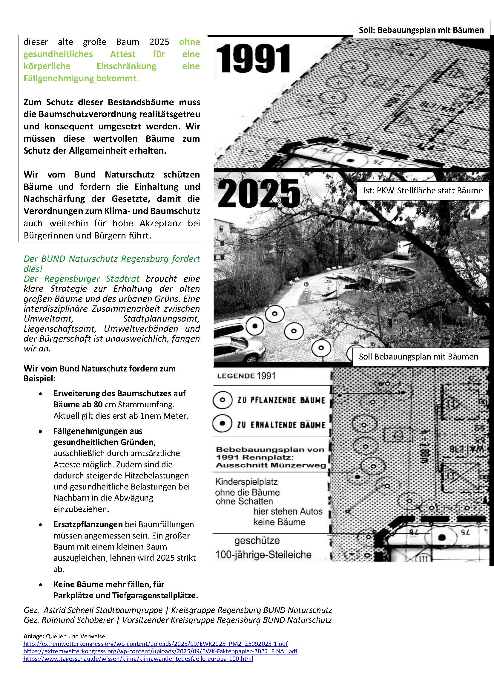 Presseerklärung: BUND Naturschutz Regensburg sorgt sich um die großen, alten Stadtbäume Regensburgs - Ab dem 1. Oktober beginnt wieder die Saison der Baumrodungen