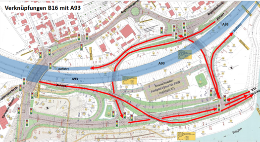 Die Anwesenden Stadträte bemängelten auch, dass viele dieser Informationen ihnen so nicht vorlagen. Erstaunt waren sie über die Vielzahl von Ampelanlagen und der geplanten schwierigen Verkehrsführung. Aus einem „Kreisel ohne Ampeln“ wird zukünftig ein „Verkehrsknoten mit zahlreichen Ampelanlagen“. Allein, dass alle die über die B16 von Norden kommen, bevor sie in den neuen „Kreisel“ einschwenken können, erst eine Ampelanlage passieren müssen, war niemanden bekannt (Anlage 2, siehe pdf).