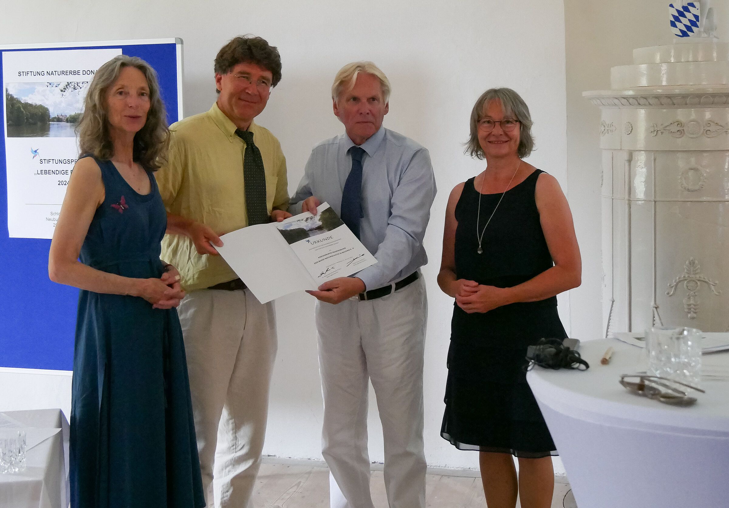 Am 29.06.2024 fand im Wittelsbacher Schloss Grünau bei Neuburg an der Donau die alle zwei Jahre stattfindende Preisverleihung der Stiftung Naturerbe Donau statt. Mit dem internationalen Stiftungspreis „Lebendige Donau“ werden Einsatz und Leistungen ausgezeichnet, die entscheidend und in vorbildhafter Weise zum Schutz und zur Erhaltung des Naturerbes entlang der gesamten Donau beigetragen haben. Der Fokus liegt auf der Durchführung von Maßnahmen zur Stärkung der Biodiversität und der dynamischen Prozesse im Flusssystem und den Auen der Donau von der Quelle bis zur Mündung.