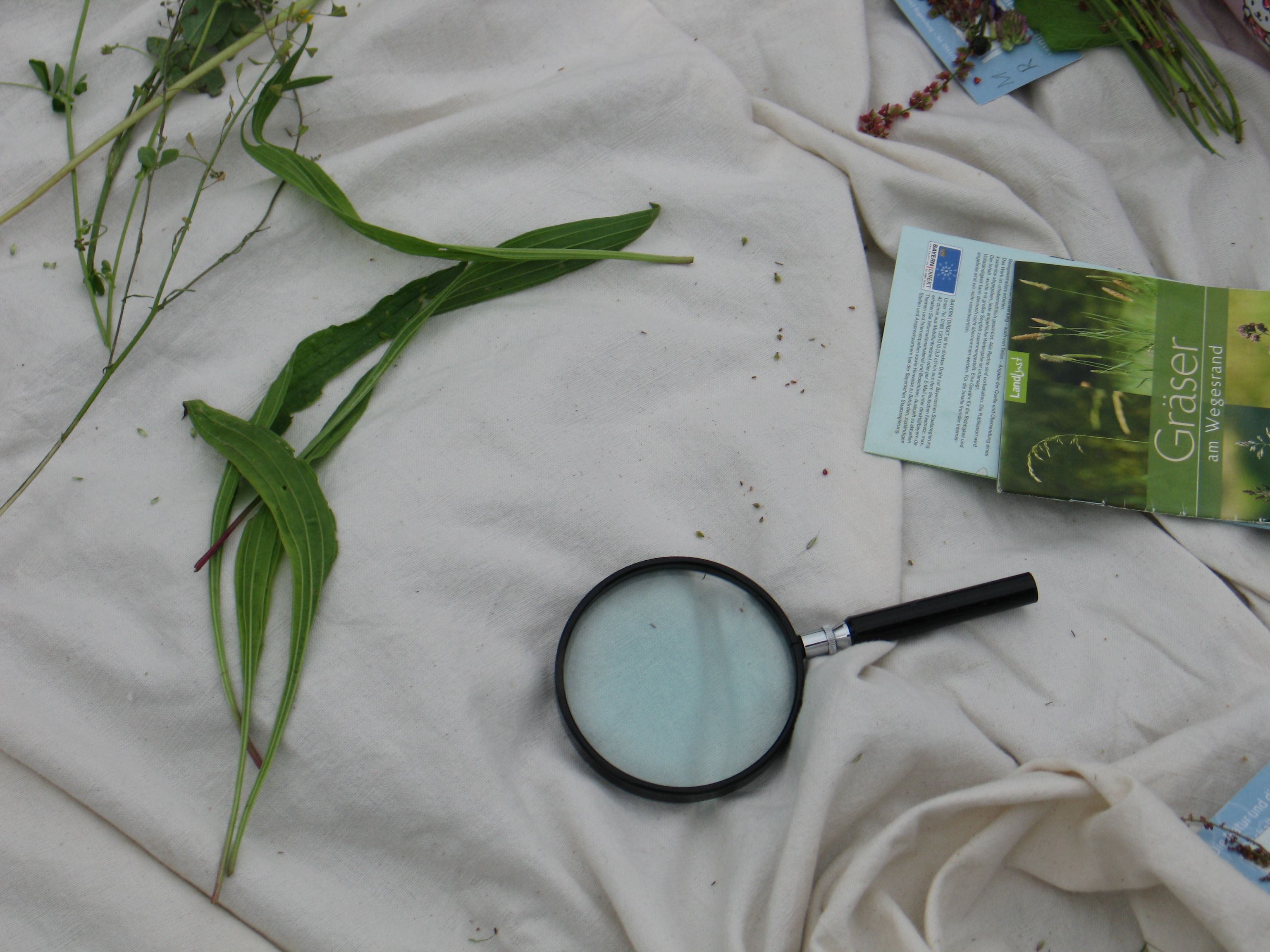 So gut ausgestattet, machen wir uns zusammen auf die Suche nach allerhand Pflanzen- und Tierarten, die wir dann spielerisch versuchen miteinander zu bestimmen.