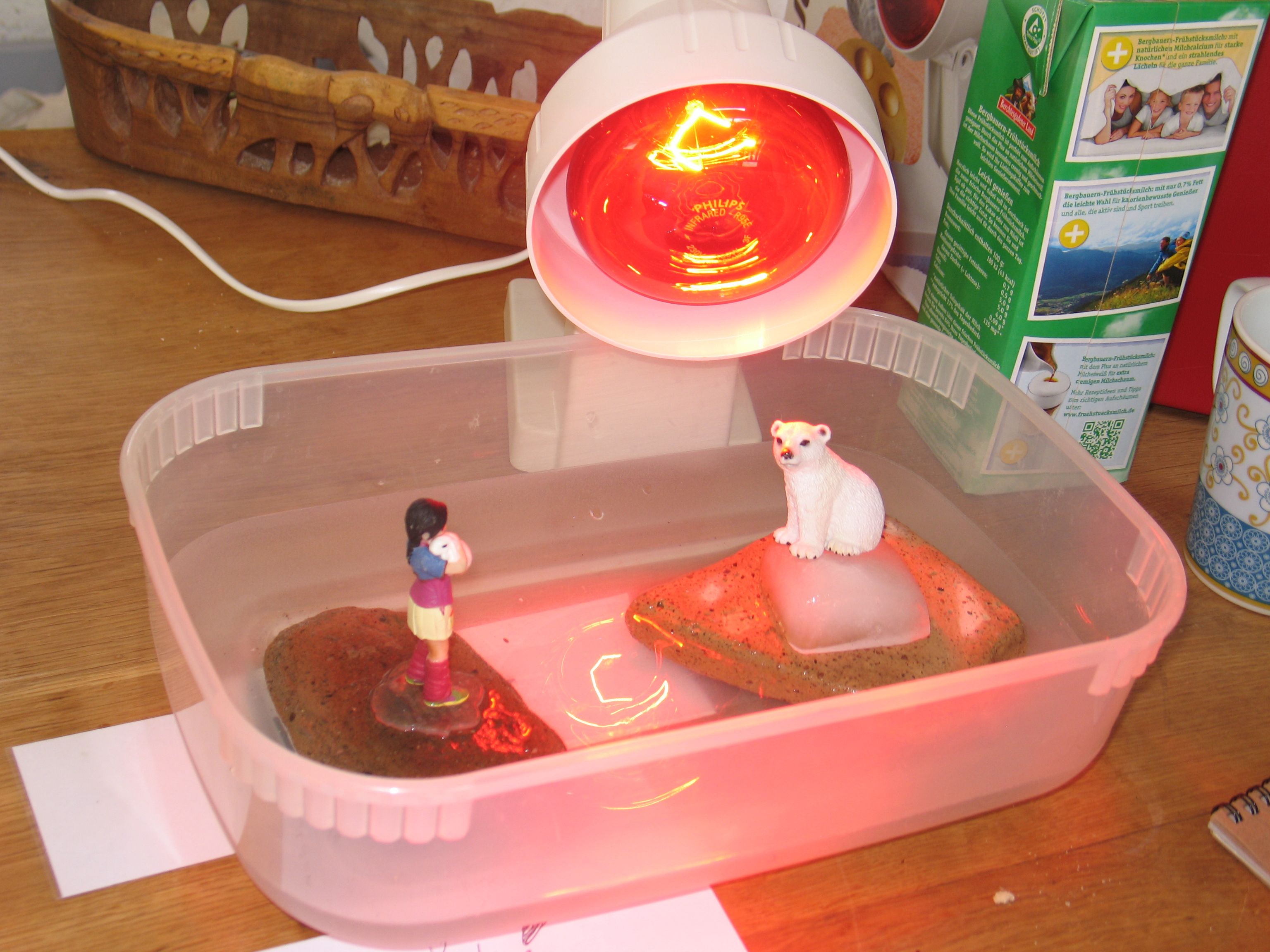In unseren Versuchen zu Energie und Klimawandel könnt Ihr all das entdecken und selber ausprobieren. Mit sieben Experimentierkisten werden die Themen Luft, Windentstehung, Kohlendioxid, Golfstrom, Gletscher, Energieverbrauch und Erneuerbare Energien behandelt.