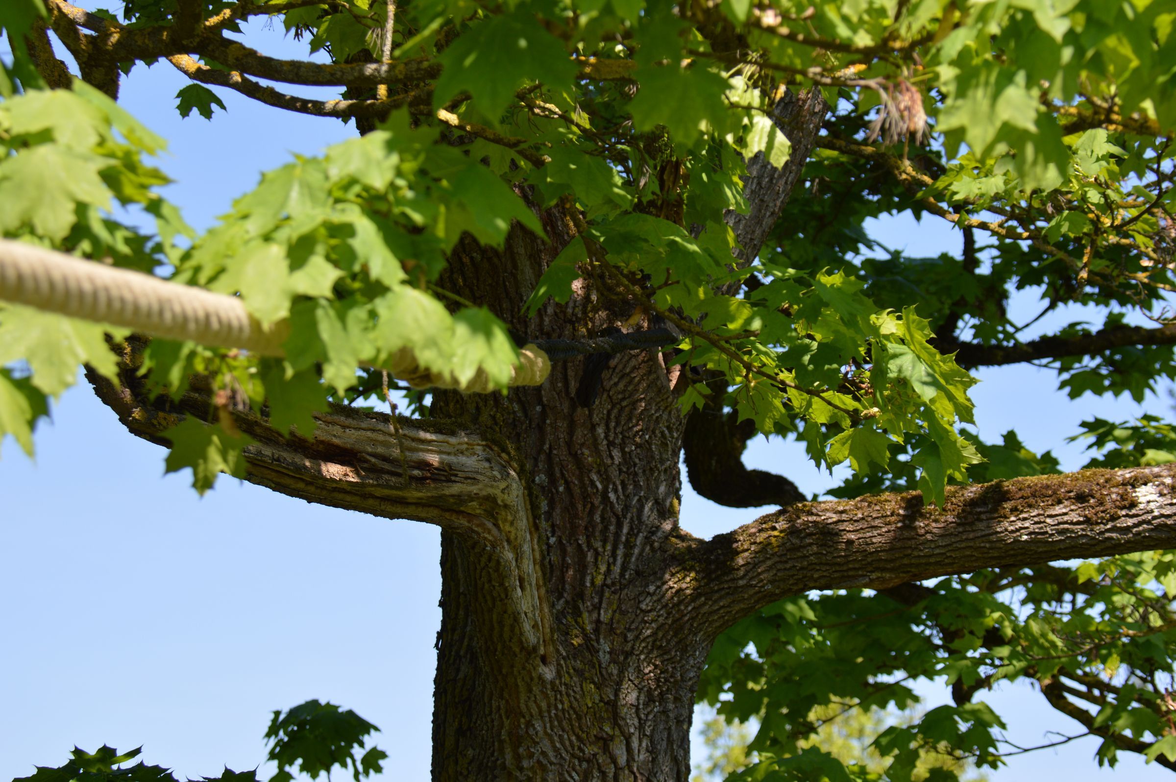 Bewährt haben sich dicke Seile, die für die Kronensicherung von Bäumen und beim Bau von Hochseilgärten verwendet werden. Diese Seile sind rutschfest, wetter- und UV-beständig und lassen sich einfach verbauen.