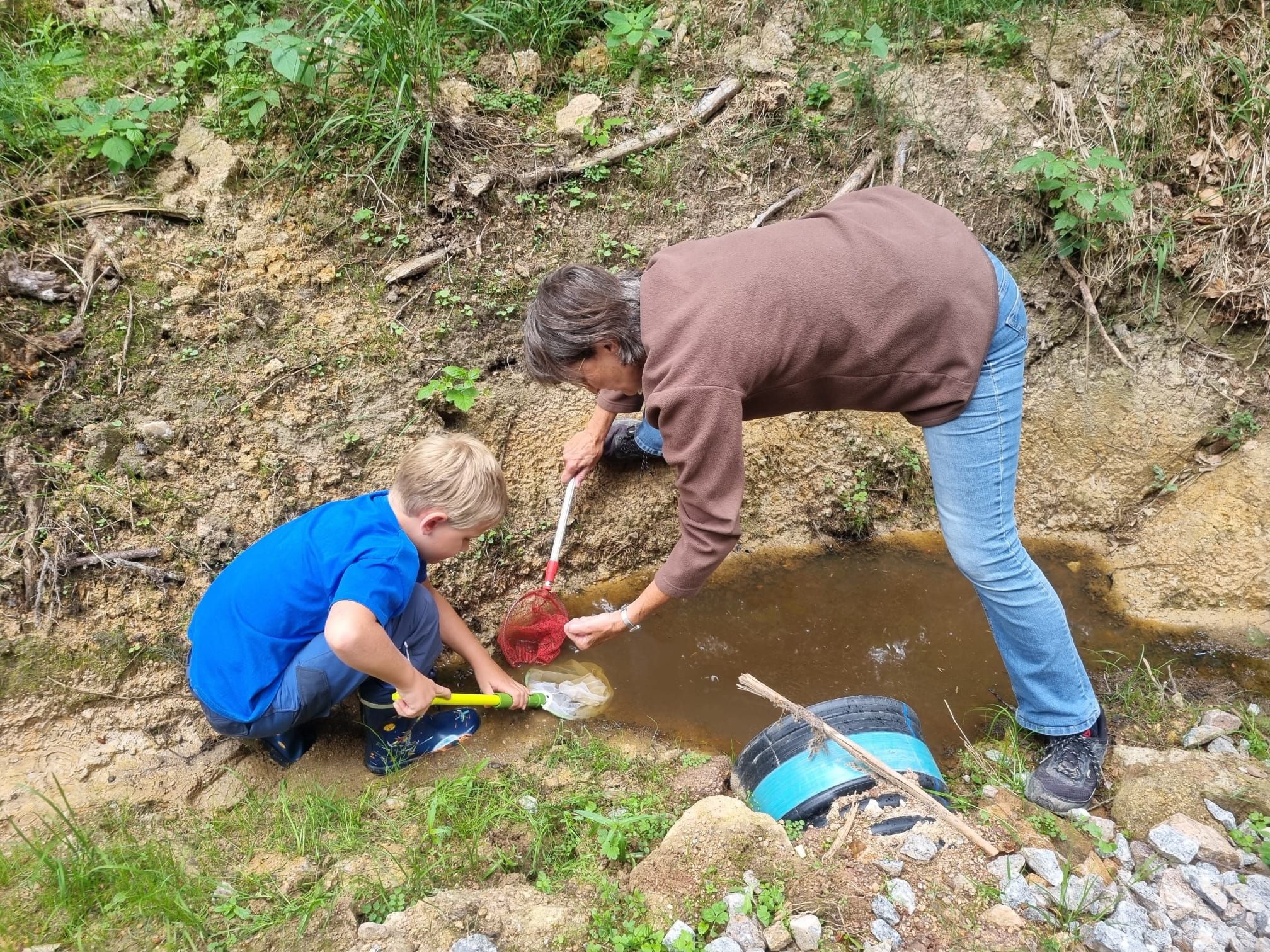 Sehr praxisorientiert war im Juli das Angebot, die Projektgruppe Gelbbauchunken auf einer ihrer Touren zu begleiten und den kleinen Amphibien Auge in Auge gegenüberzutreten. Die Projektgruppe hat in den letzten Jahren einen guten Grundstock an Daten gesammelt inklusive Anzahl und Alter der vorkommenden Tiere sowie ihrer Wanderbewegungen. Dazu hat Franz Häring ein Programm entwickelt, das genau auf die Datenerfassung- und Auswertung angepasst ist und mittlerweile auch schon von anderen Gruppen genutzt wird.