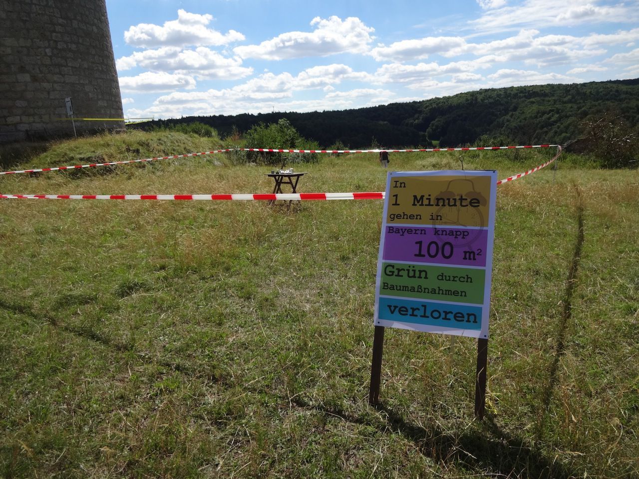 Im Juli haben wir im Rahmen der Landkreisveranstaltung Kultour-Landschaften auf der Kallmünzer Burg Installationen mit Infos zum Flächenverbrauch und Landschaftsbildveränderung gezeigt.