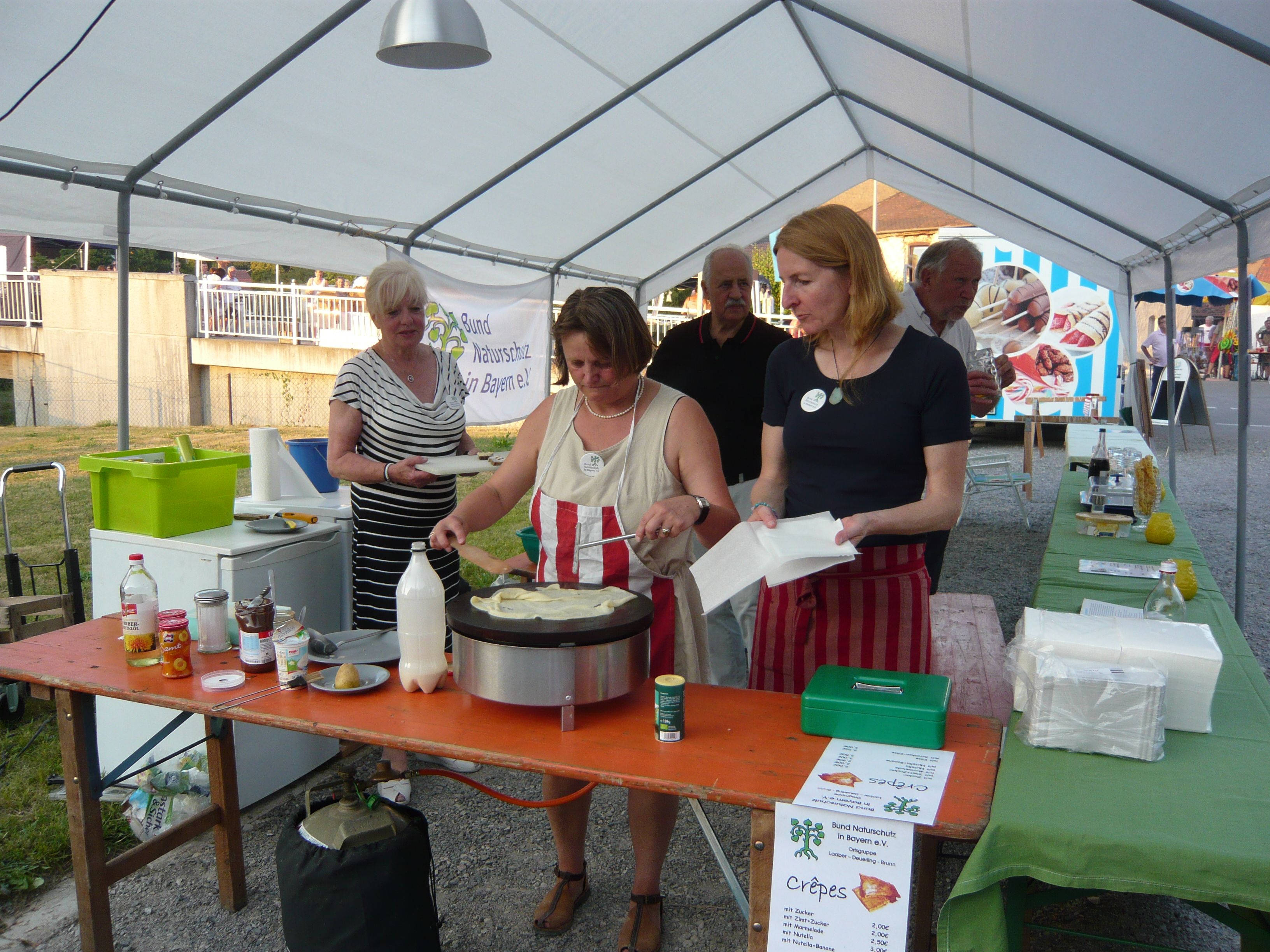 Im August konnten sich die Besucher des Deuerlinger Brückenfestes an 2 Tagenüber unser kulinarisches Angebot freuen. Es gab fränkischen Rot- und Weißwein, dazu Bauernbrot mit Griebenschmalz oder Obazdn. Natürlich waren auch unsere Crêpes wieder heiß begehrt. Trotz der großen Hitze durften auch die Deuerlinger Kinder einen Blick durch unsere Binokulare werfen. Es war gar nicht so einfach, für genügend Kühlung zu sorgen, damit die kleinen Tierchen frisch und munter blieben.
