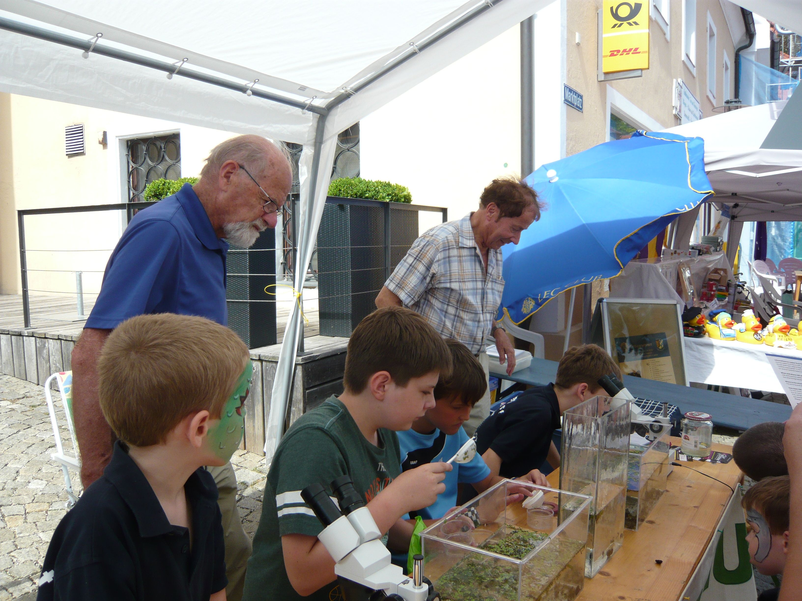 Im Juli waren wir erneut mit einem Stand beim Bürgerfest in Laaber vertreten. Für die Kinder hatte Dr. Starosta – unterstützt von Dr. Zorn - zahlreiche Kleinlebewesen aus unseren heimischen Gewässern geholt, die durchs Mikroskop betrachtet werden konnten. An den Schautafeln konnte man sich Informationen zu den Tieren beschaffen.