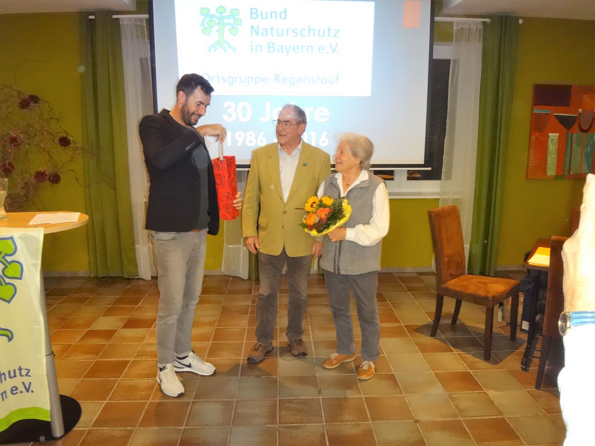 Die Mitgliederversammlung verabschiedete sich an diesem Abend nicht nur von ihrem langjährigen 1. Vorsitzenden, sondern ebenso von ihrem Schatzmeister, Herrn Manfred Schade und der Schriftführerin, Frau Doris Kreuzer. Nach 10, bzw. 19 Jahren im Amt verabschiedeten sich auch diese beiden. Sie wurden für ihre hervorragend geleistete Arbeit gelobt und erhielten großen Applaus. Alle drei versprachen aber, auch in Zukunft dem Bund Naturschutz Regenstauf als Mitglieder erhalten zu bleiben und sich auch weiterhin mit Rat und Tat einzusetzen.