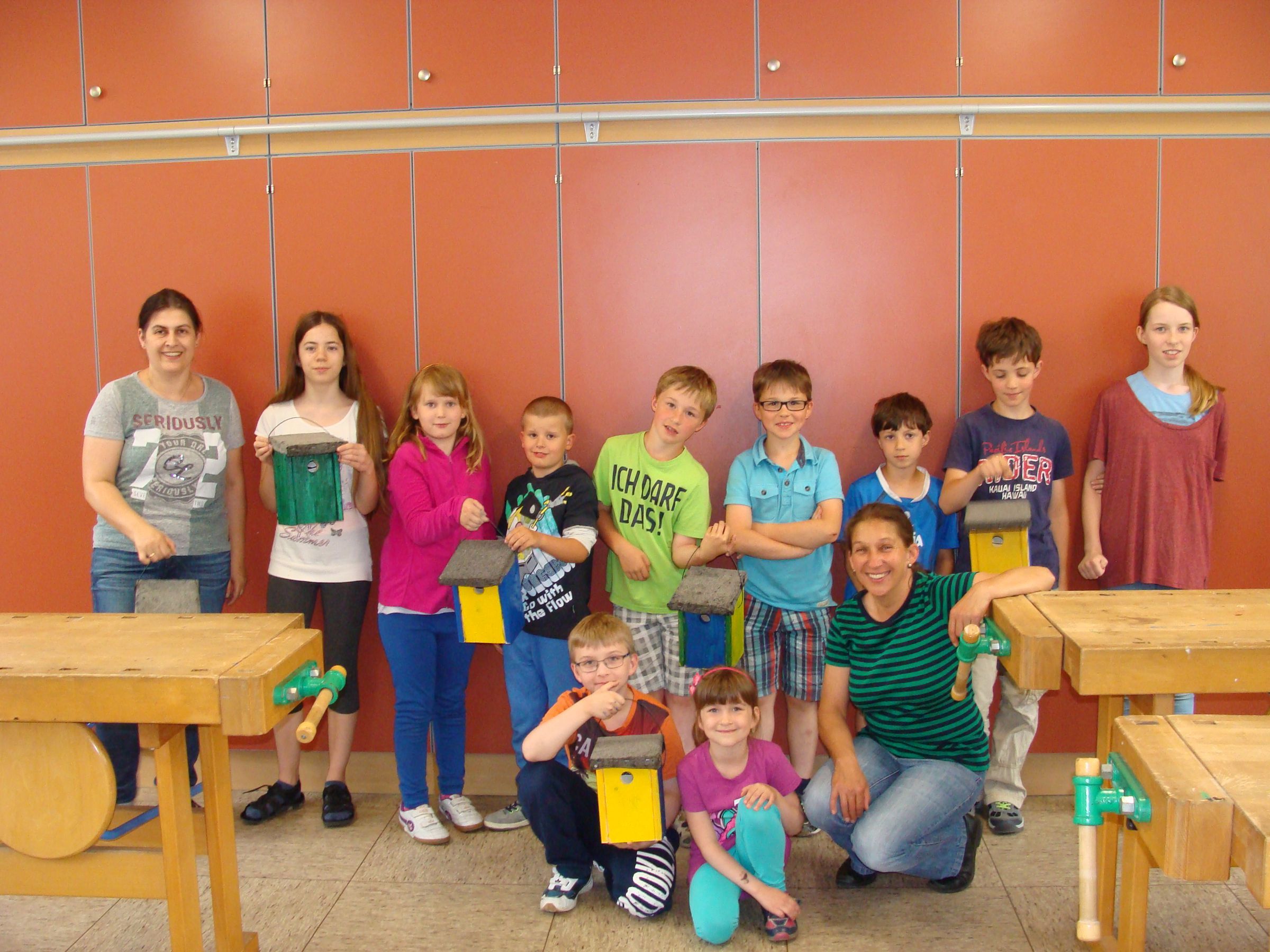 Eine gemeinsame Aktion gab es im letzten Jahr zwischen der Ortsgruppe und dem Familienstützpunkt Schierling. Unter dem Motto "Geschwister im Blick" durften Geschwister unter Anleitung in Gemeinschaftsarbeit einen Nistkasten bauen. Die Kinder hatten eine Menge Spaß beim Schrauben, Hämmern und Anmalen und der Erfolg konnte sich sehen lassen. Auch der Wandertag mit den 4. Klassen fand wieder mit großen Erfolg statt. Die drei Schulklassen wurden von der „Bockerlbahn“ in die obere Au gebracht, wo sie Biberspuren und heimische Pflanzen in Hecken und Wiesen entdecken durften. Beim Schifferl-Bauen mit Schilf, beim Geländesuchspiel und Umweltquiz waren die Kinder wieder mit großem Eifer dabei.