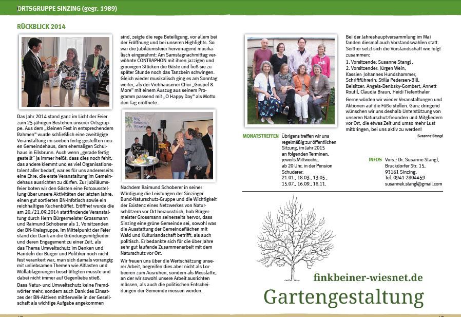 - Besondere Freude bereitet der große Zuwachs an Neumitgliedern, die die BN-Werbeaktion erbrachte, die Gemeinde Sinzing zählt jetzt 223 Bund-Naturschutz-Mitglieder!