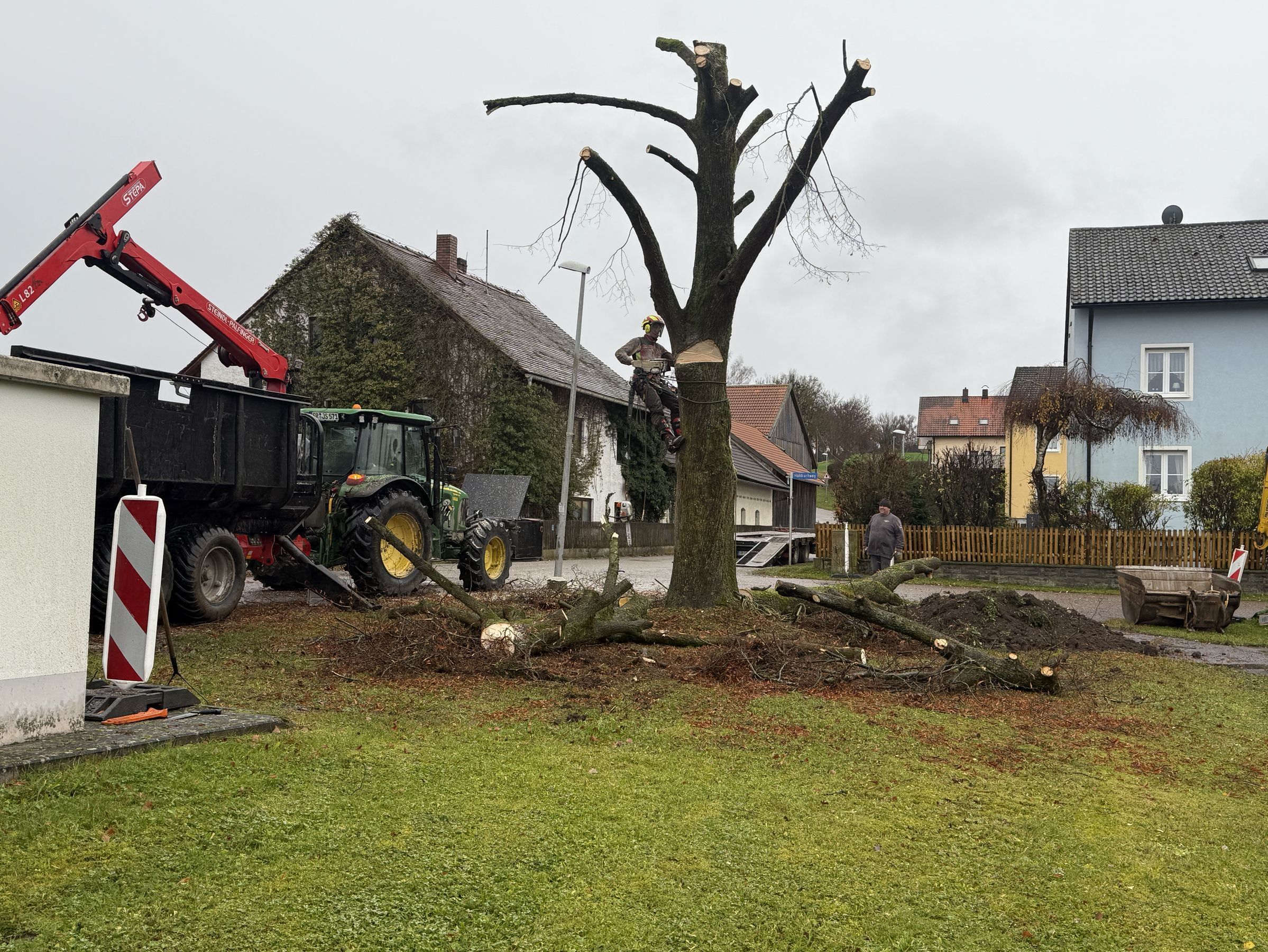Die Fällung der etwa 70-jährigen, ortsbildprägenden und vitalen Linde wurde in der Gemeinde über ein Jahr hinweg diskutiert. Anlass dafür waren zunächst Planungen für einen Fußgängerweg und später die Errichtung eines Verteilers für die Glasfaseranbindung (PoP). Von der Ortsgruppe des BUND-Naturschutz war wiederholt gefordert worden, dass Alternativen geprüft werden.