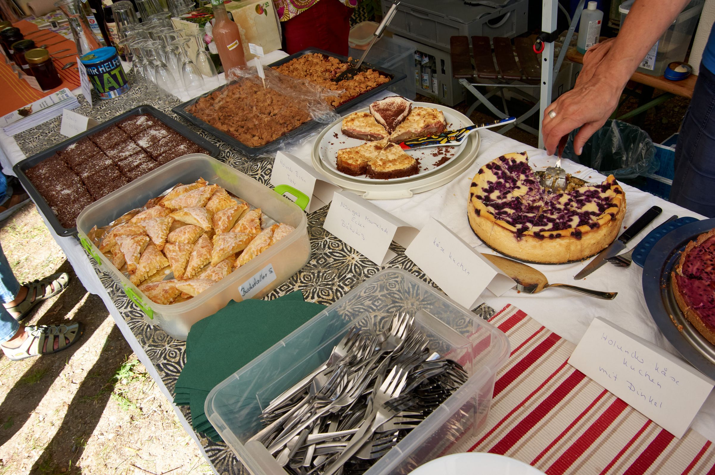 Dank vielen Helfern wurden Waffeln gebacken. Dazu gab es alle möglichen Variationen von Holundergellee. Eine reichhaltige Auswahl an Kuchen - meist mit Holunder - fand rege Nachfrage.