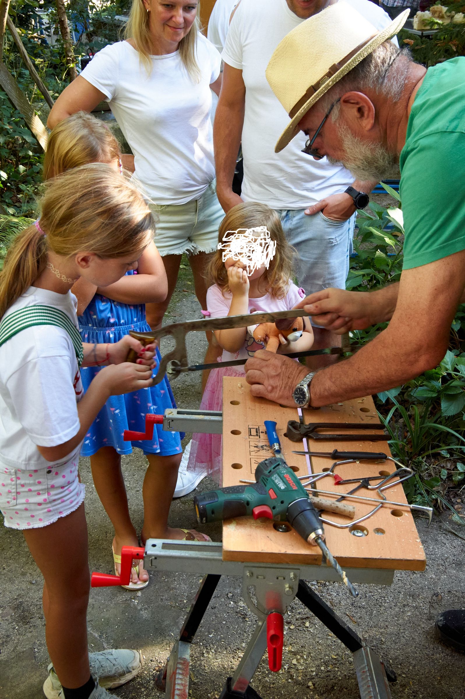 Allein das Biotop von Erich Weiß überrascht jedesmal mit Neuigkeiten - dort eine neuer Steinbrunnen, dort eine neue Pflanze. Es ist ein idealer Platz für unser Fest.