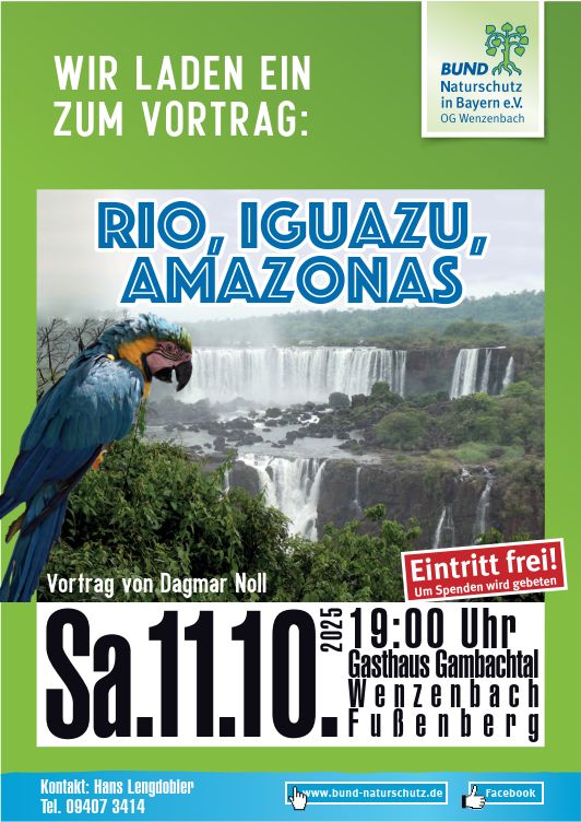 Der Bund Naturschutz in Wenzenbach lädt ein zu einem Vortrag über Brasilien: Rio de Janeiro, die Wasserfälle von Iguazu und eine zweiwöchige Reise auf dem Amazonas.